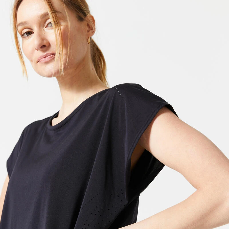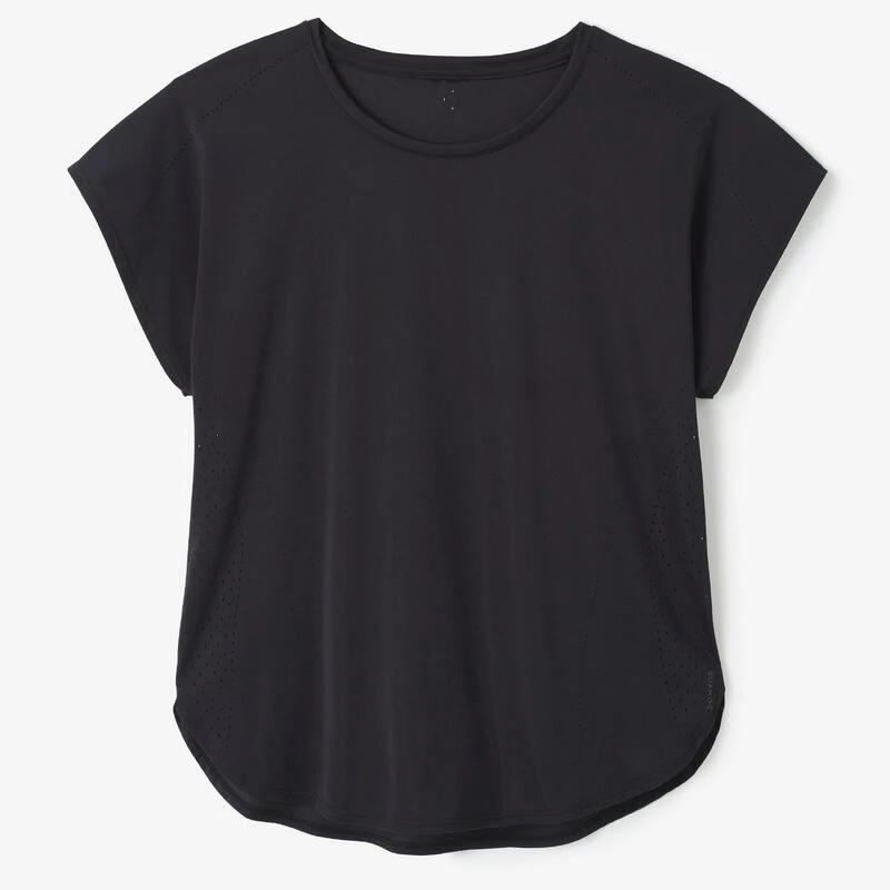 8800181Dit losse T-shirt in een ademende en rekbare stof werd ontwikkeld voor alle sportsters die comfortabele kleding willen die ook stijlvol is.Dit T-shirt is dé must-have van het seizoen! Je draagt het boven een sporttopje of -beha, het is gemaakt van een ademende en rekbare stof met technische details (body mapping en perforaties) voor meer comfort.